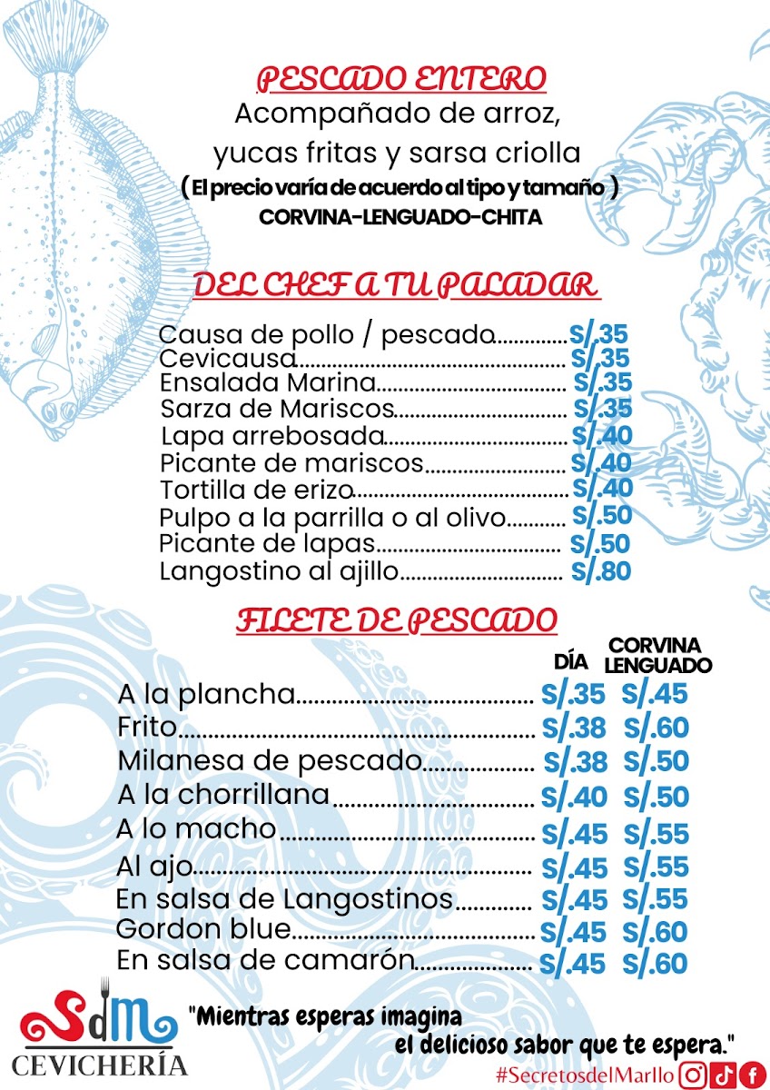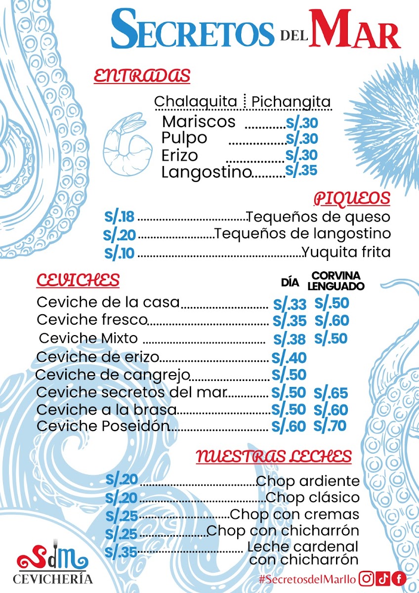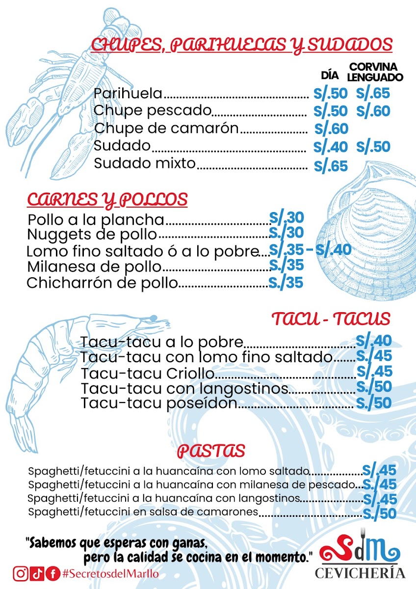 The menu at Secretos Del Mar Cevichería in Ilo feels like a confident showcase of Peruvian coastal cooking, balancing bright, citrusy freshness with comforting, hearty plates. If you’re here for the classics, Ceviche de Pescado stands out as an essential starting point, while bolder combinations like Ceviche Poseidón and Ceviche Y Arroz Con Marisco expand the experience beyond a single-note ceviche order. For something more filling, Arroz Con Mariscos delivers that rich, seafood-forward depth, and hot selections like Ronda Caliente offer a satisfying mix for anyone who wants variety in one go. Fish lovers will appreciate the range in preparations-from the crisp, straightforward appeal of Corvina Frita, to the saucier, more layered flavors of Filete de Pescado A la Chorrillana and Corvina En Salsa de Langostinos, which lean into savory, restaurant-style finishes. There’s also a clear effort to include crowd-pleasing fusion comfort: Fetuchinni Con Lomo Saltado brings an indulgent, filling twist that bridges familiar pasta texture with the punch of a beloved stir-fry. On the side of lighter bites, Choritos A la Chalaca keeps things zesty and snackable, while drinks like Cocktail and the tropical Piña Colada round out the menu with an easygoing, beachy vibe that matches the restaurant’s identity. Overall, the standout dishes feel thoughtfully chosen to cover fresh, fried, sauced, and mixed platters-making it easy to build a meal that tastes like a full tour of the sea.
